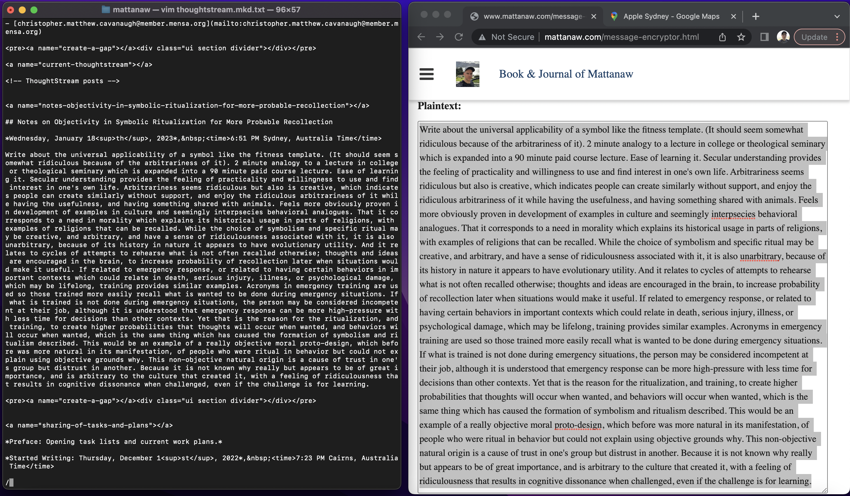 This Book and Journal is already one of the largest private websites and writings ever prepared, at nearly 1 million words, greater than 50,000 images and videos, and nearly one terabyte of space utilized. The entire software architecture is of my creation. Issues of the book for sale can be found under featured. These texts are handmade by myself, and are of excellent quality, and constitute the normal issues of my journal that can also be subscribed to. The entire work is a transparent work in progress. Not all is complete, and it will remain in an incomplete state until death.